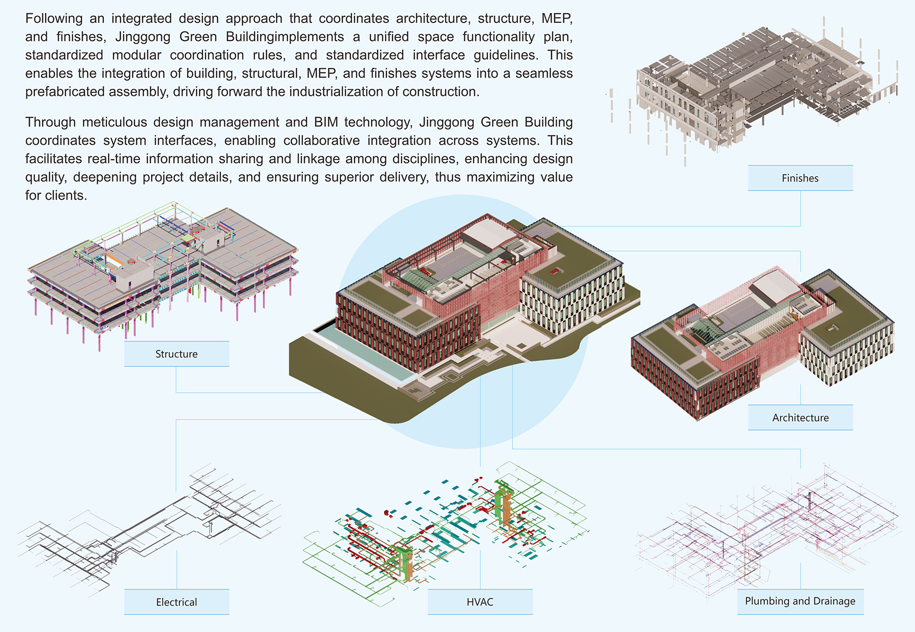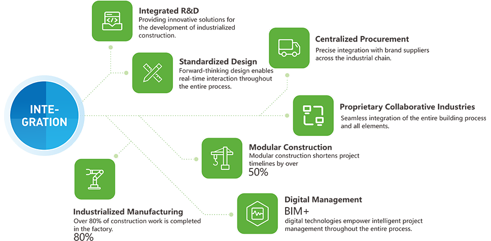 Providing clients with comprehensive solutions through an industrialized construction approach and EPC model, incorporating “standardized design, factory production, digital management, and modular construction.”